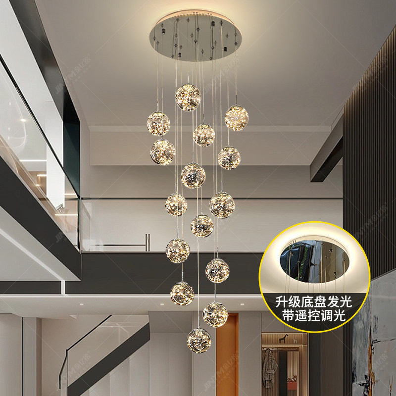 满天星楼梯灯长吊灯旋转复式楼现代简约轻奢别墅loft公寓客厅吊灯