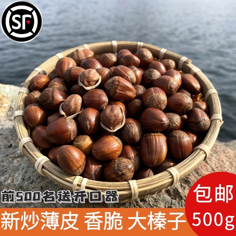 23东北榛子铁岭特产野生开口炒熟手拍生大颗粒山臻子新货坚果500g