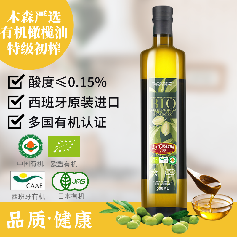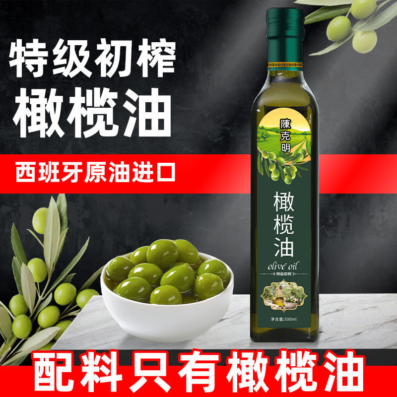 特级初榨橄榄油西班牙原油进口100%纯冷榨橄榄油食用油500ml