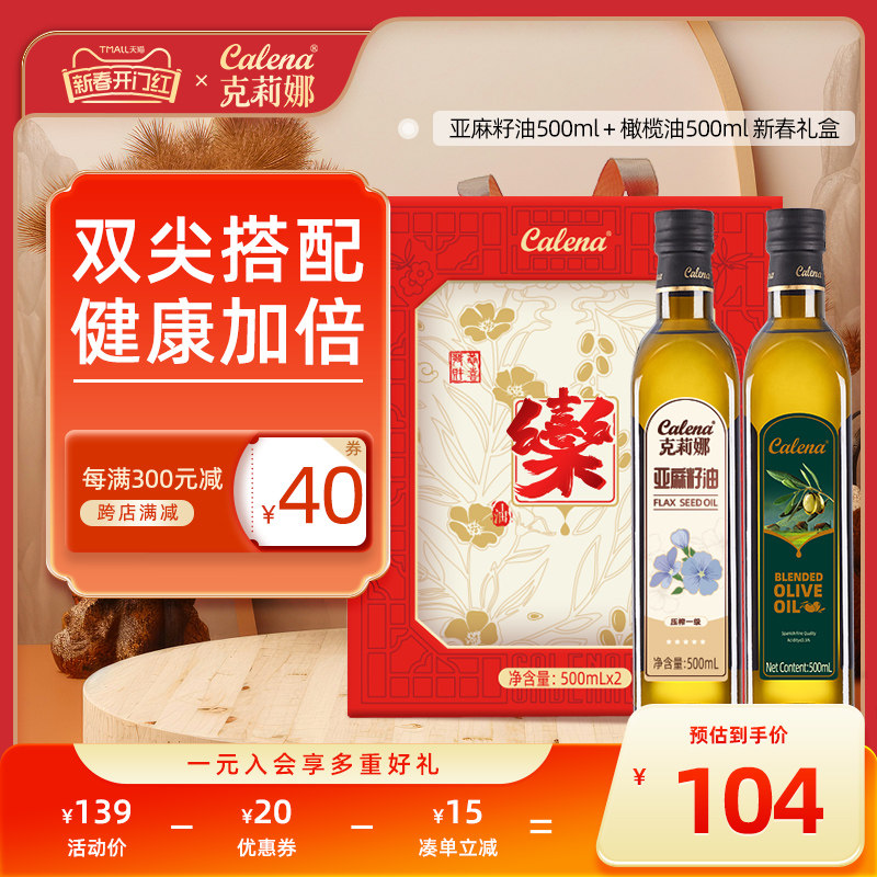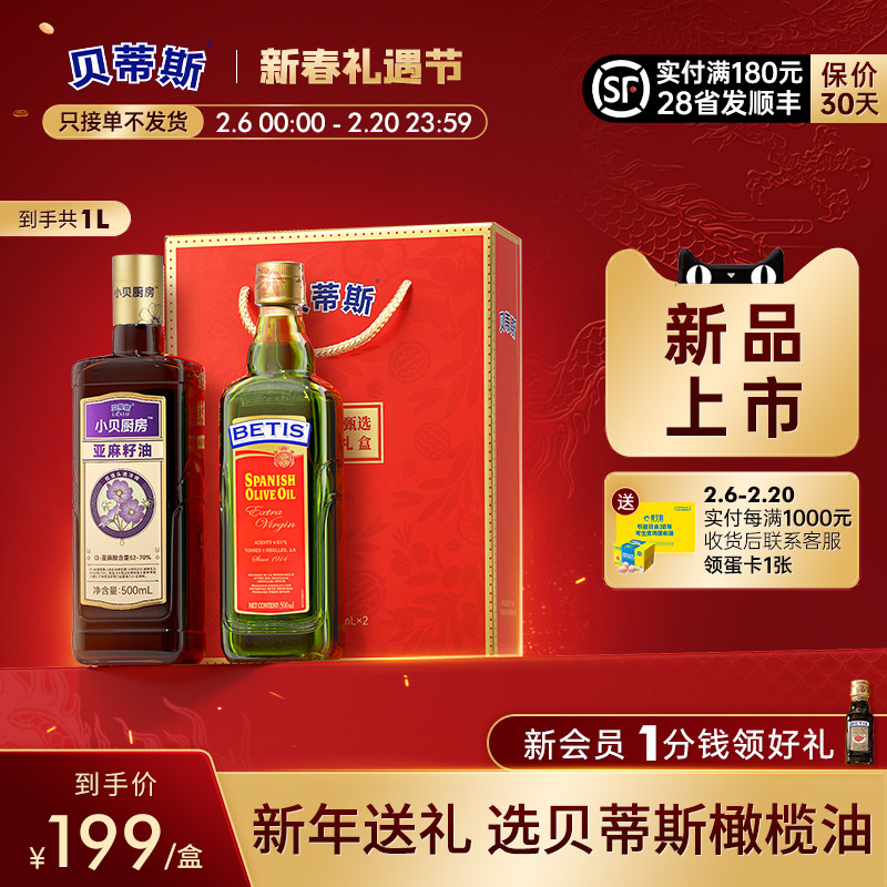 贝蒂斯亚麻籽油500ml*2礼盒原装进口特级初榨橄榄油+国产物理冷榨