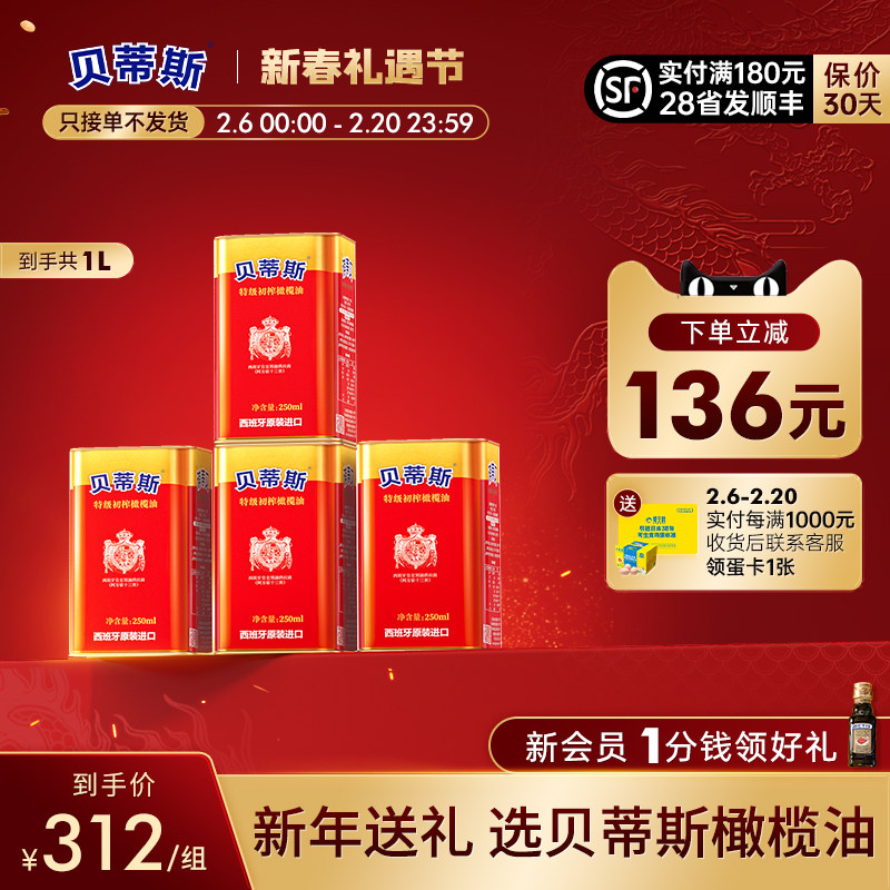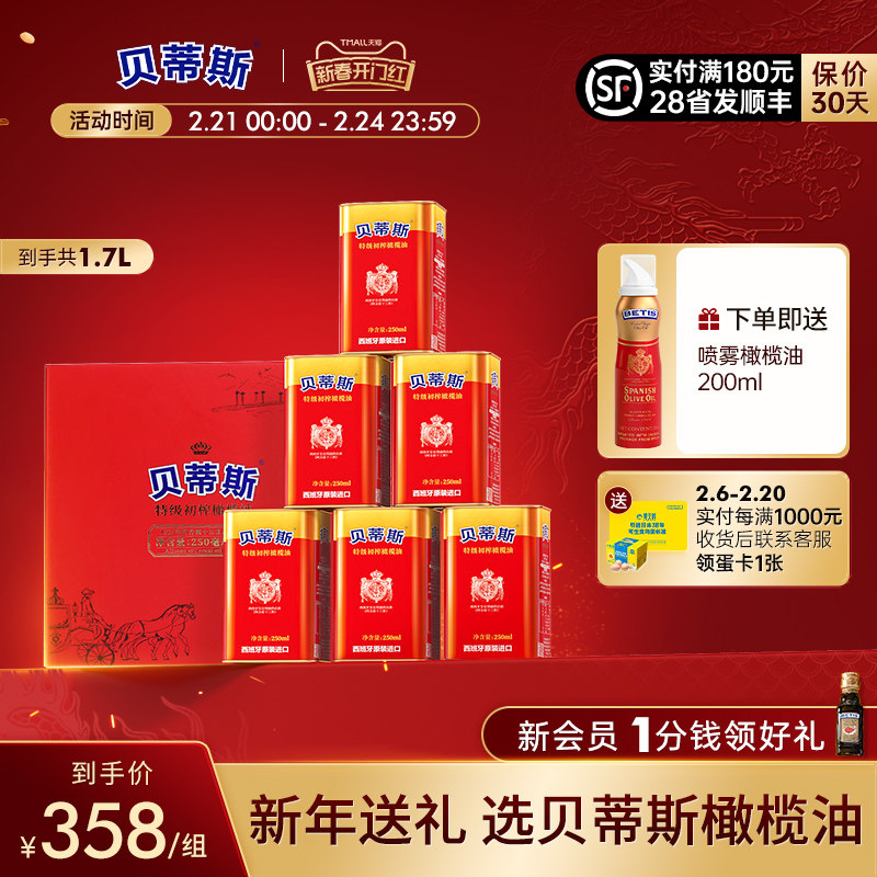 贝蒂斯特级初榨橄榄油250ml*6小罐1.5L礼盒送礼健身炒菜原装进口