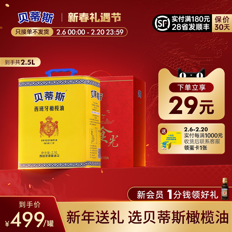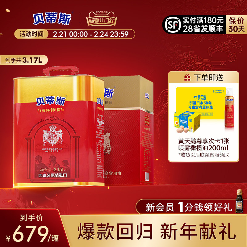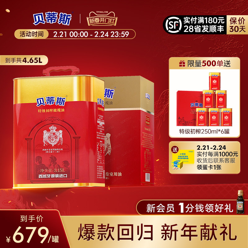 贝蒂斯特级初榨橄榄油3.15L礼盒元宵原装进口送礼炒菜食用油囤货