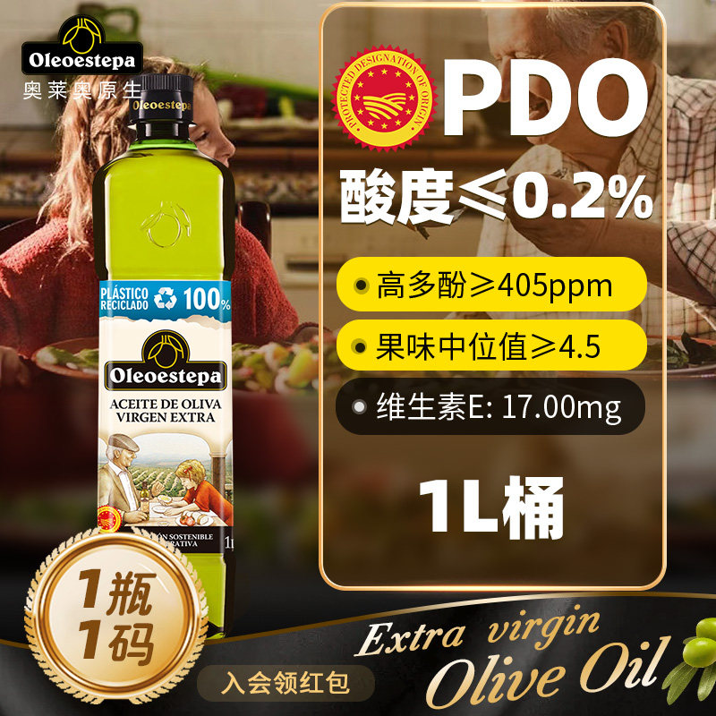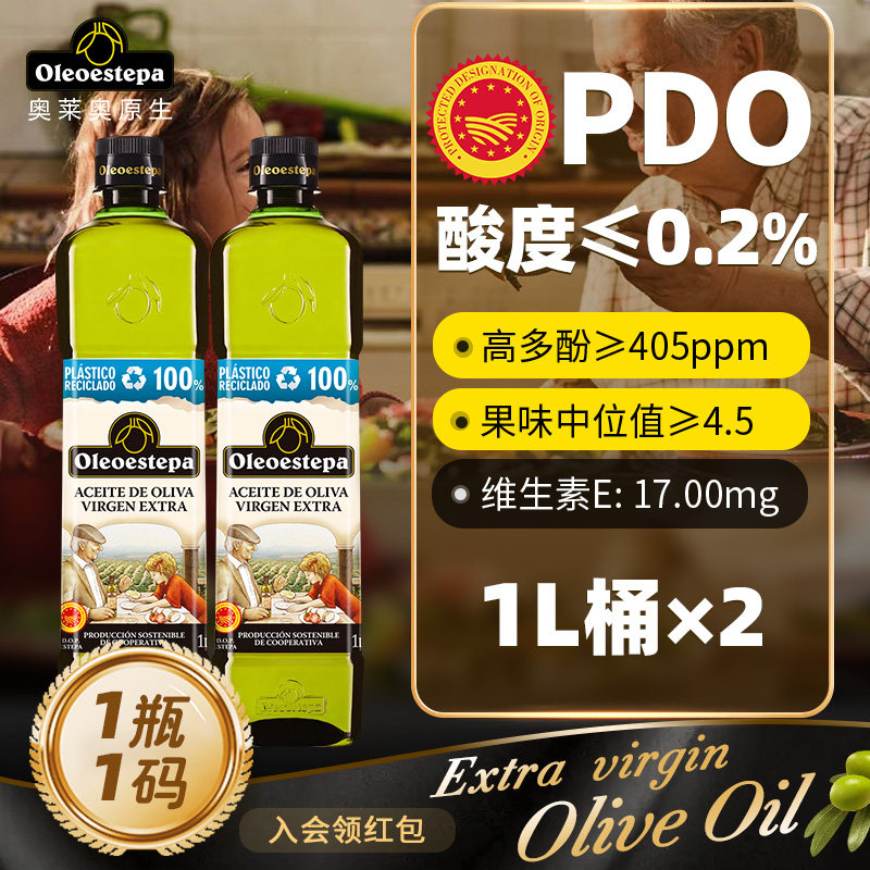 奥莱奥原生EstepaPDO橄榄油特级初榨经典系列1升X2桶酸度≤0.2%