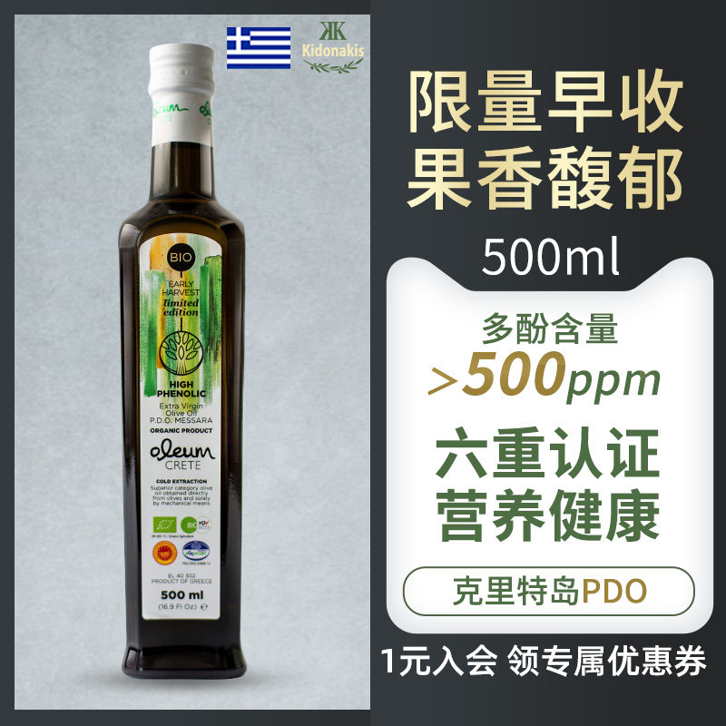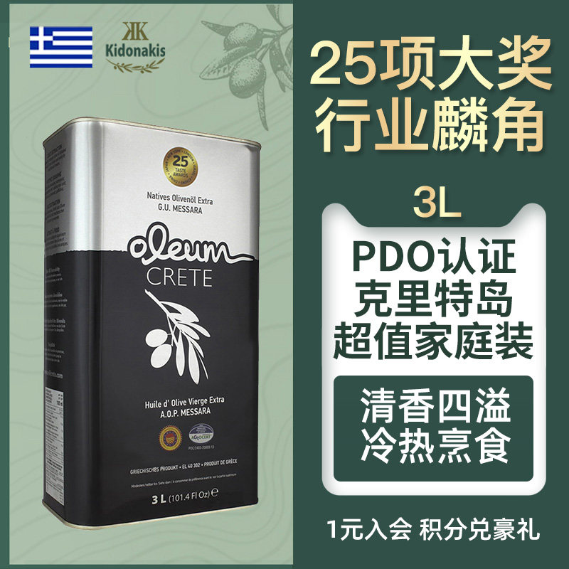 希腊原装进口官方正品PDO冷榨特级初榨橄榄油牛排专用炒菜食用油