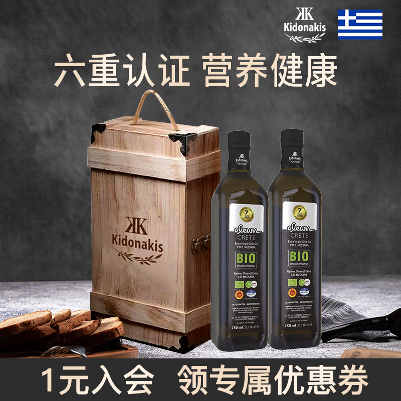 希腊进口克里特BIO特级初榨橄榄油PDO礼盒装750ml*2瓶公司团购礼