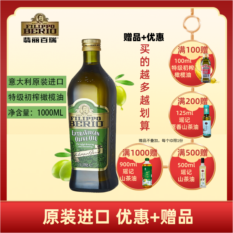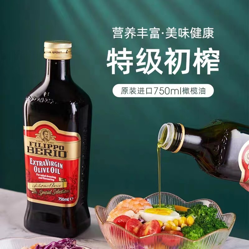 翡丽百瑞特级初榨橄榄油1L/瓶750ml/瓶炒菜凉拌食用油意大利进口