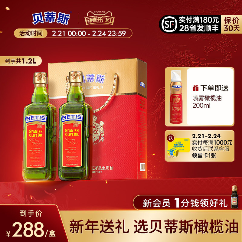 贝蒂斯特级初榨橄榄油750ml*2瓶团购食用油礼盒送礼进口元宵节