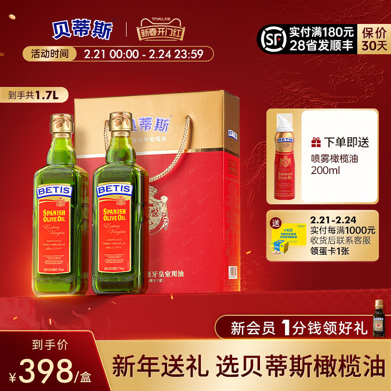 贝蒂斯特级初榨橄榄油食用750ml*2瓶炒菜送礼西班牙原瓶原装进口