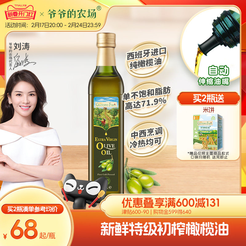 爷爷的农场100%特级初榨橄榄油热炒西班牙原装进口凉拌食用油正品