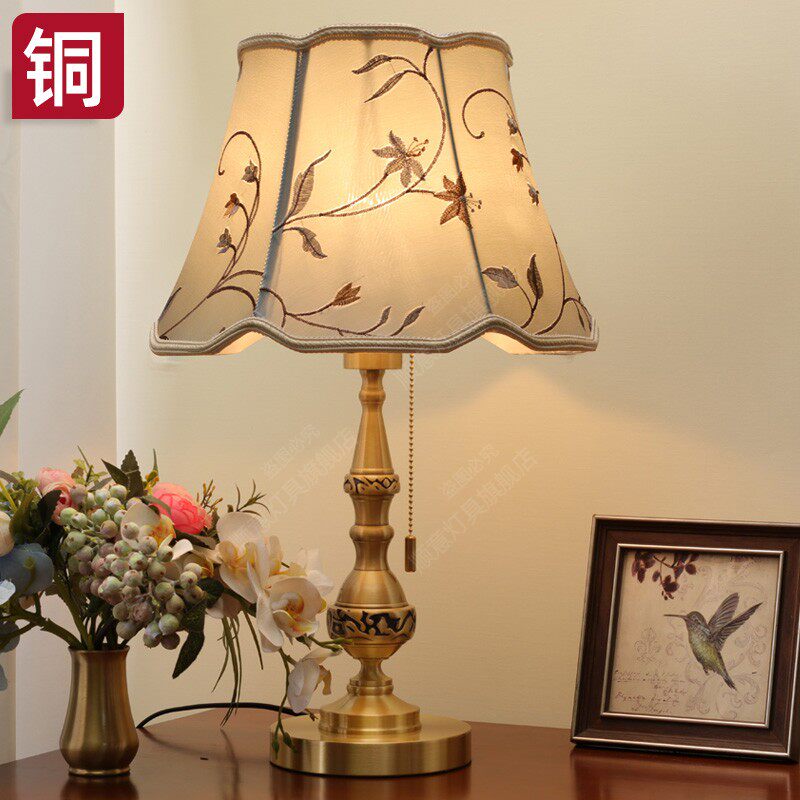 欧式全铜拉线台灯美式卧室床头灯客厅书房古典奢华温馨结婚新中式