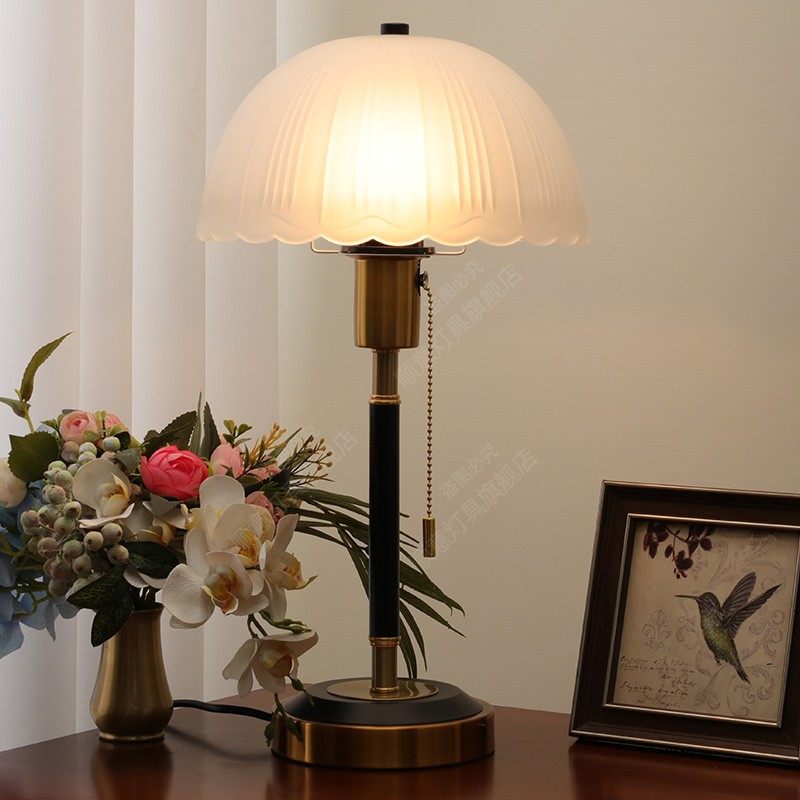 欧式铜台灯卧室床头美式简约现代温馨浪漫家用拉线调光ins风装饰