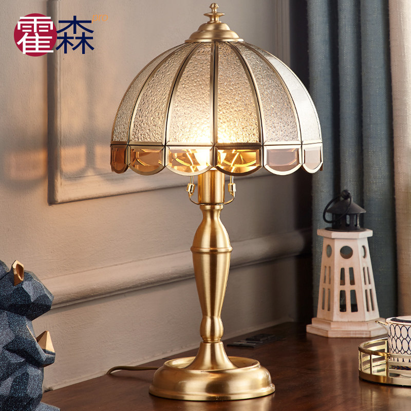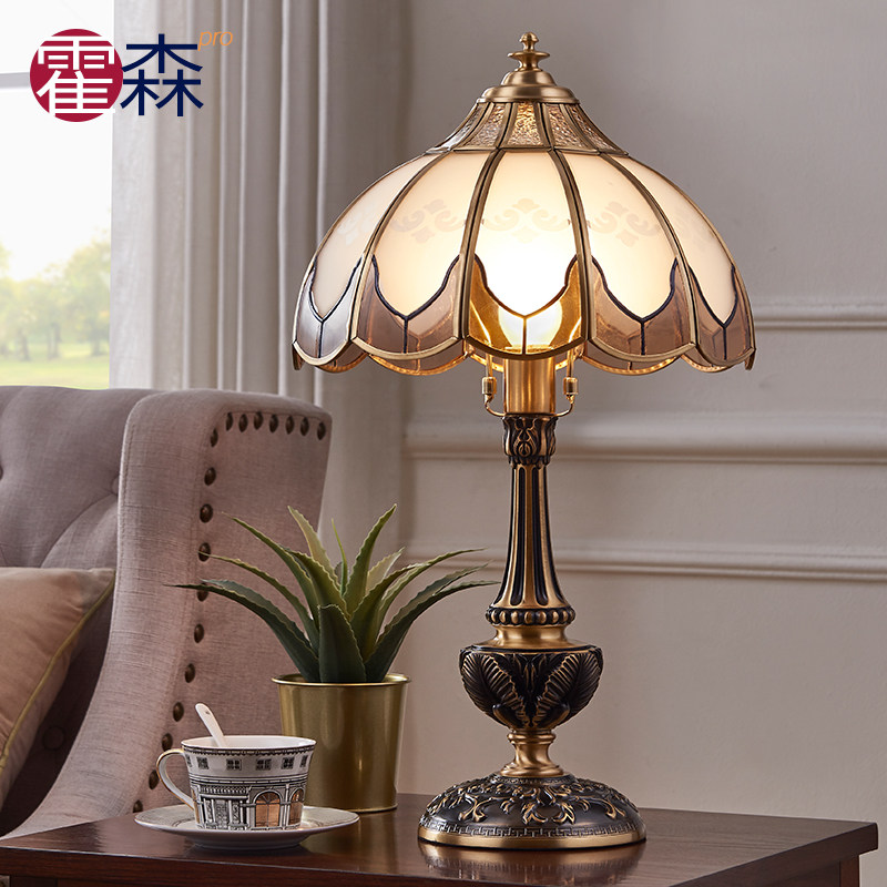 欧式复古奢华纯铜玻璃台灯温馨美式全铜客厅卧室床头灯书房新中式