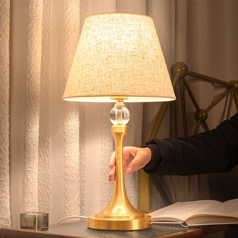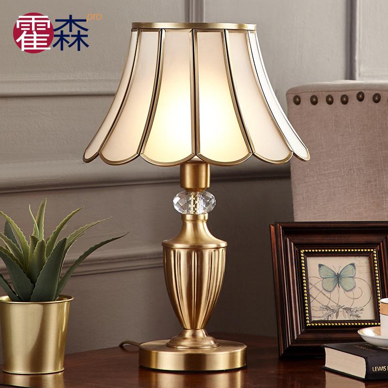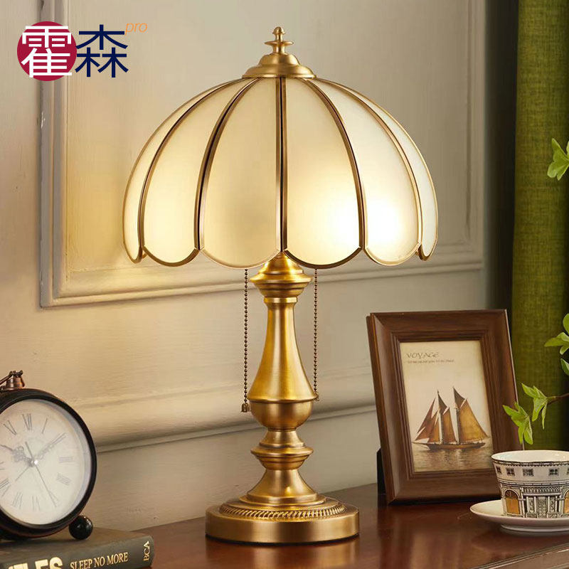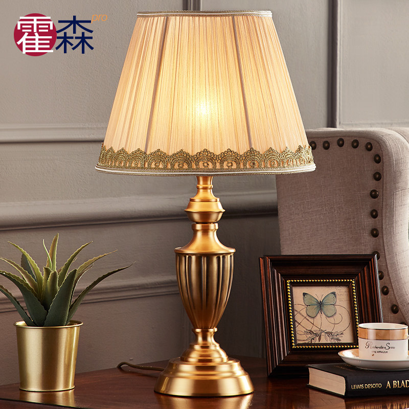 美式全铜台灯温馨欧式简约现代轻奢客厅卧室床头灯复古奢华纯铜灯