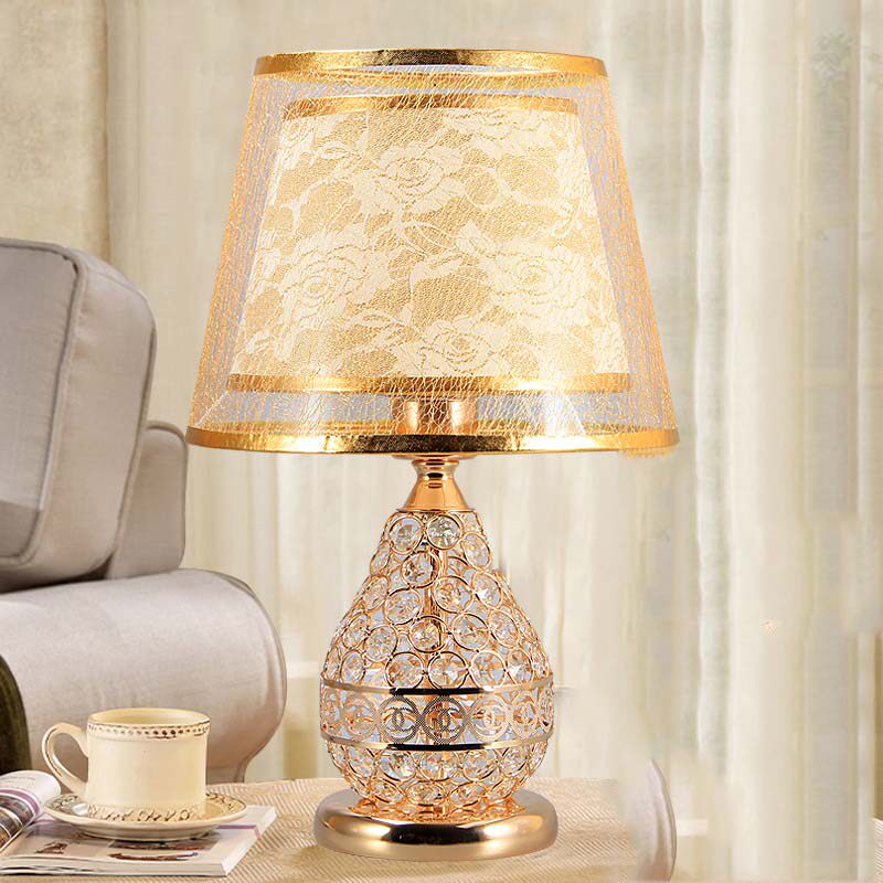 欧式法式台灯卧室床头灯儿童房公主白色蕾丝少女ins女孩水晶创意