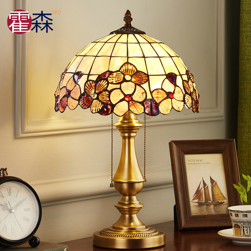 欧式美式客厅蒂芙尼复古卧室床头民宿书桌咖啡厅彩色玻璃花瓣台灯