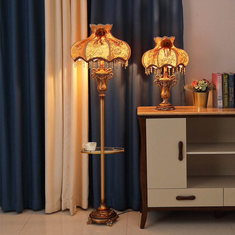 欧式田园高脚立式台灯客厅置物架落地灯卧室女孩儿童房床头公主粉