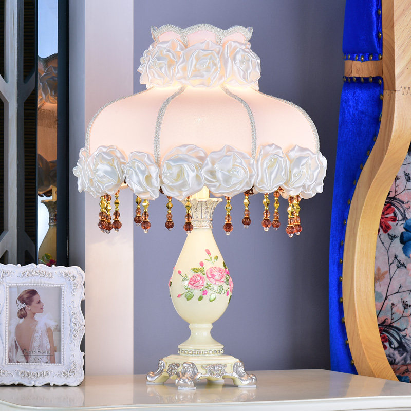 浪漫欧式粉色台灯卧室ins公主粉玫瑰花朵少女心女孩儿童房床头灯