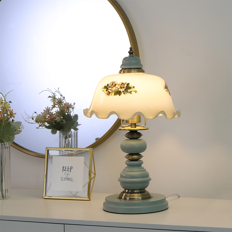 床头台灯复古仿欧式美乡村结婚房卧室客厅花朵玻璃温馨老上海奢华