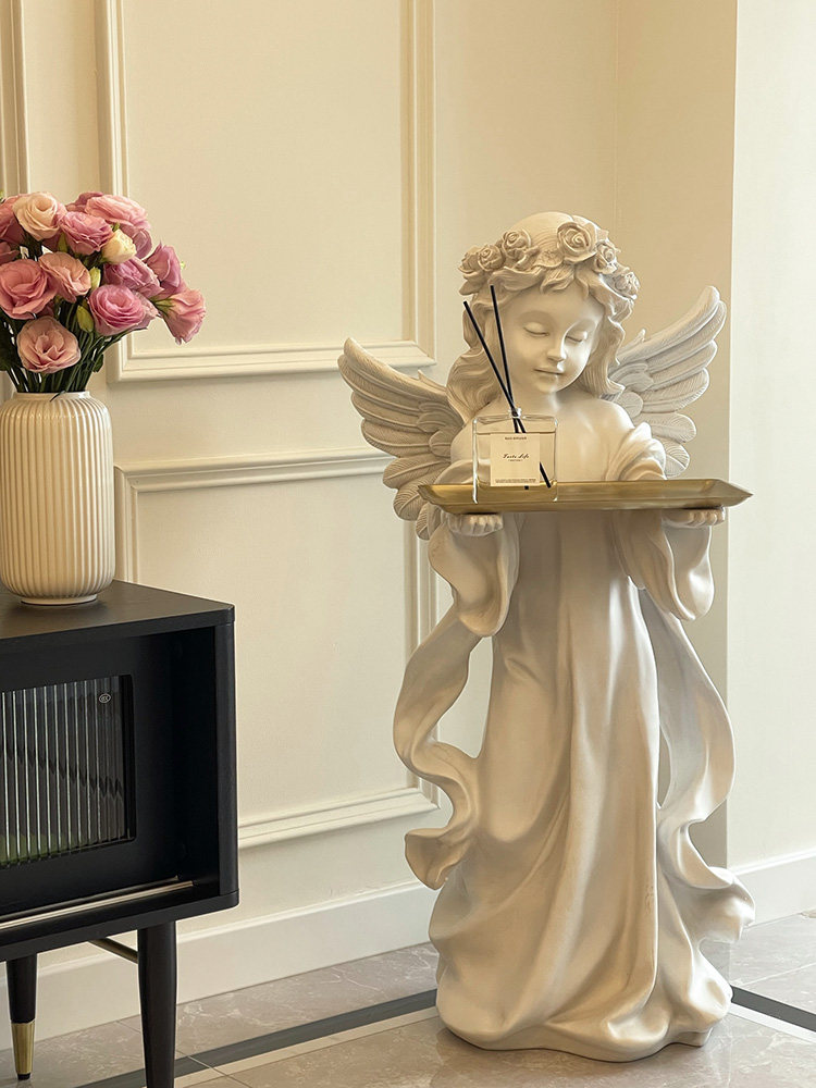 欧式复古天使落地摆件托盘客厅玄关钥匙创意桌面装饰品石膏像雕塑