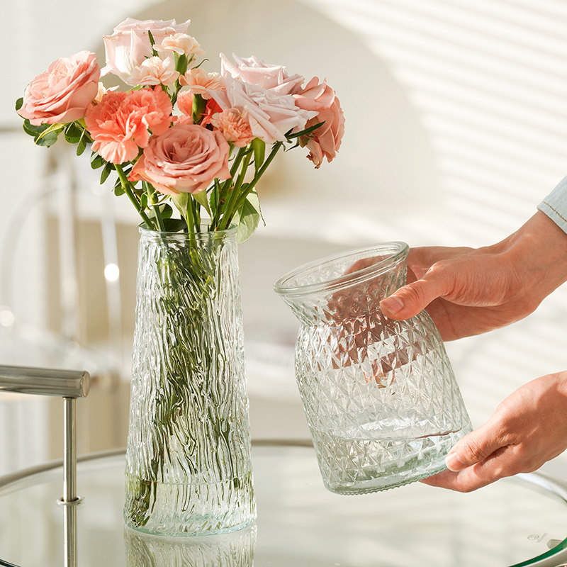 欧式玻璃花瓶ins风创意插花水养干花鲜花大口径透明花瓶客厅摆件