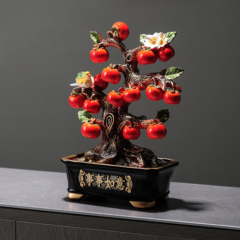 创意时尚摆件盆栽柿子树 家用桌面装饰品摆件电视柜玄关家居用品