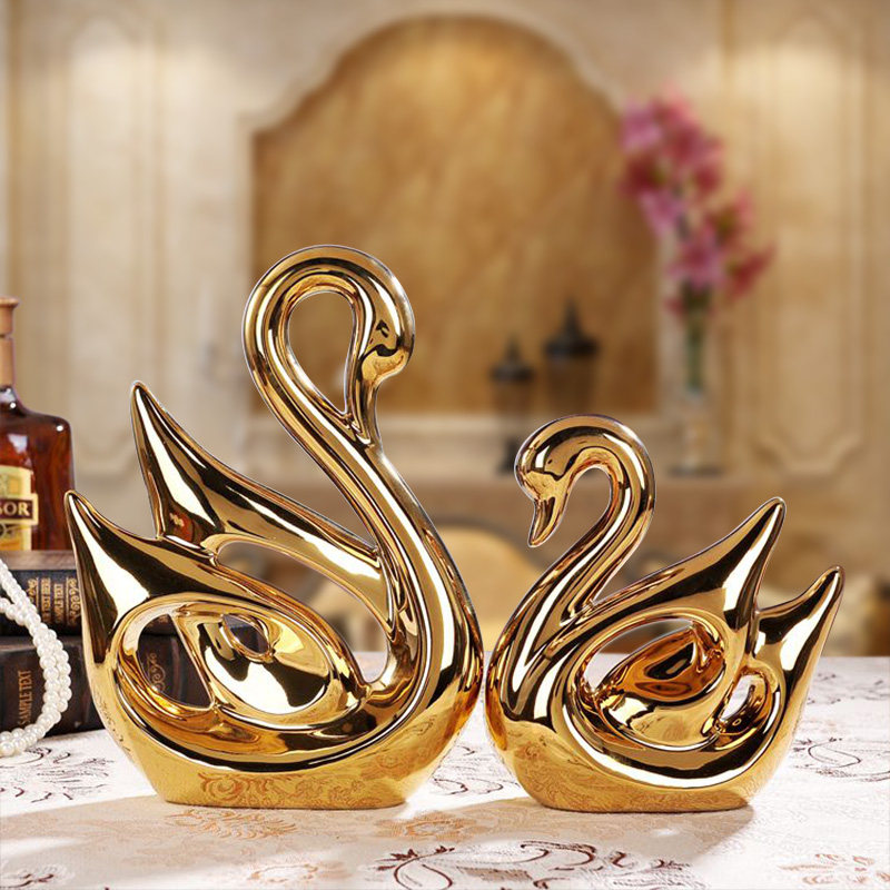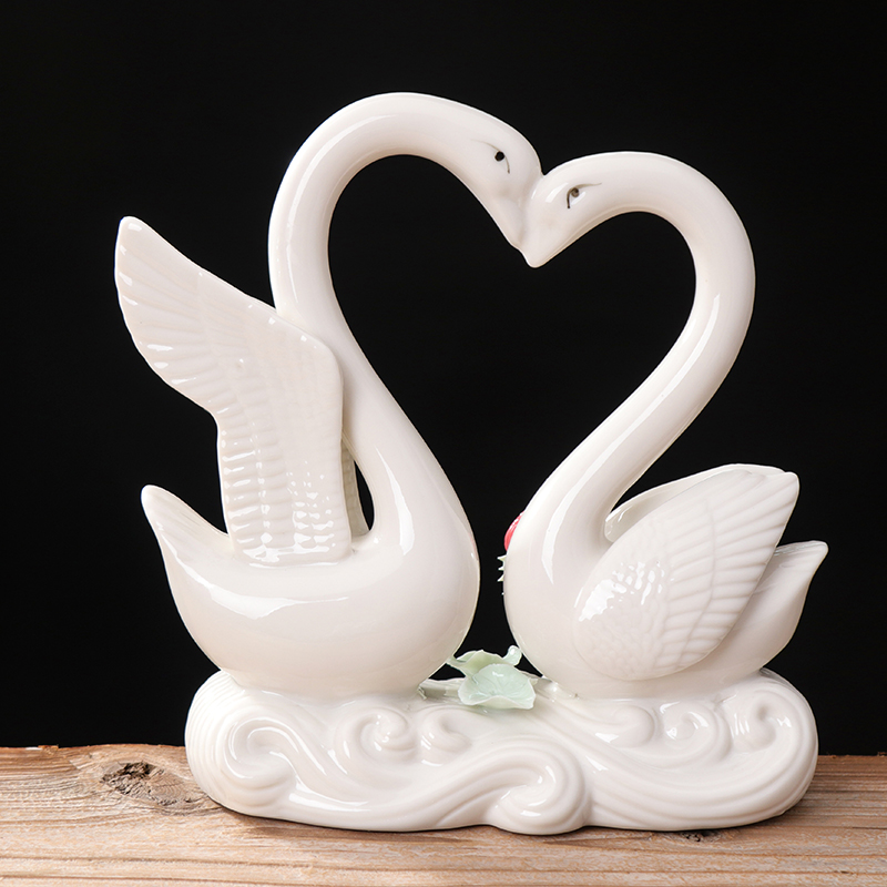 陶瓷摆件创意欧式居家客厅酒柜摆设德化白瓷天鹅一对实用装饰品