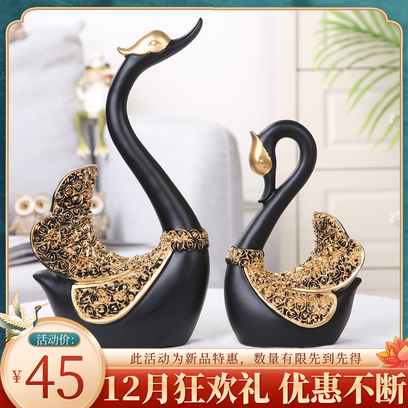 欧式情侣天鹅树脂工艺品摆件家居饰品客厅电视柜房间摆设结婚礼物