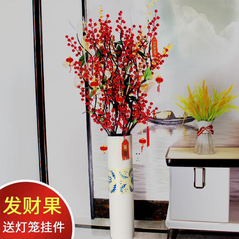 假花仿真花摆设客厅红浆果落地式插花干花花束欧式高装饰花艺摆件