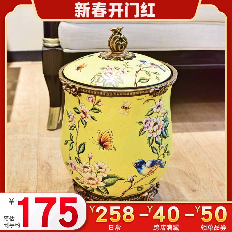 客厅垃圾桶落地摆件复古收纳桶带盖纸篓装饰美式欧式乔迁新居礼品