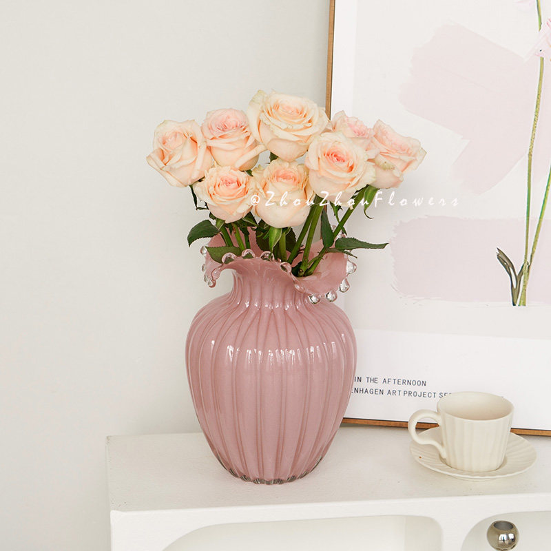 欧式中古芬顿奶油玻璃花瓶客厅创意水养玫瑰百合花器桌面轻奢摆件