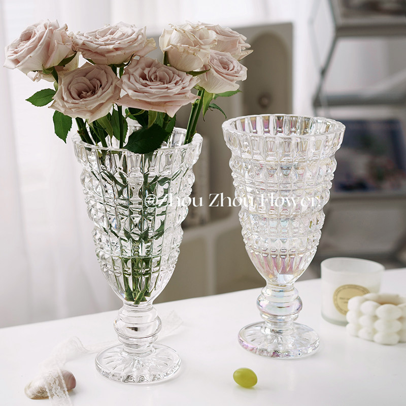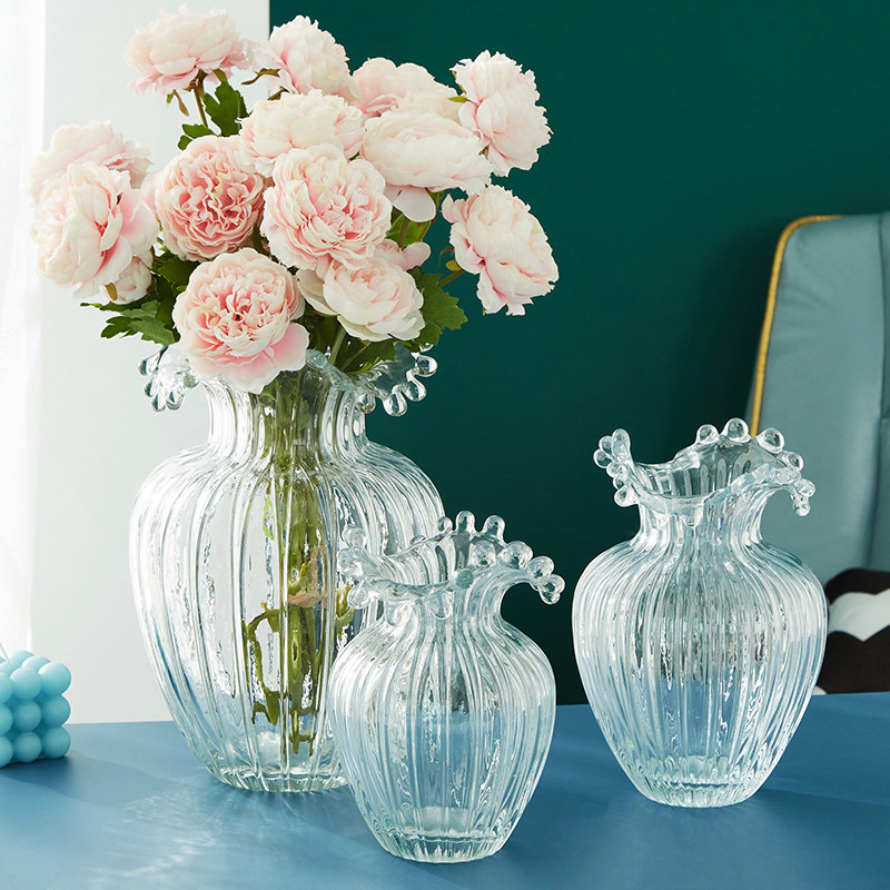 网红欧式轻奢波浪口花瓶玻璃透明摆件客厅水养鲜花干花玫瑰插花器