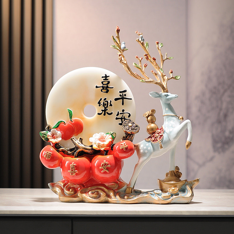 春节新年平安喜乐节节高升鹿摆件高颜值客厅玄关电视柜酒柜装饰品