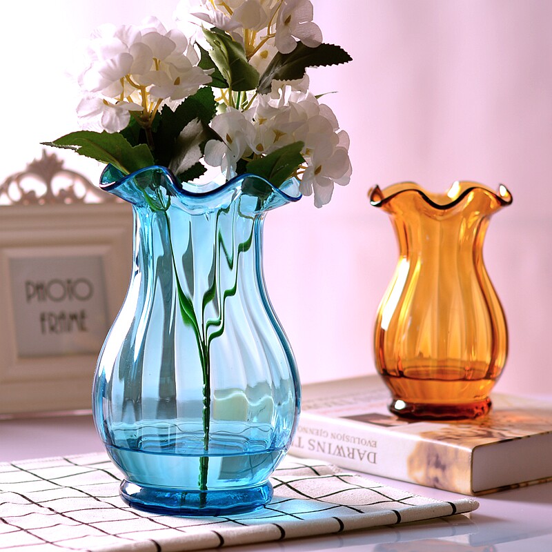 欧式迷你彩色玻璃花瓶插花装饰摆件客厅餐桌小清新透明创意水培