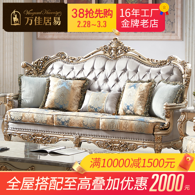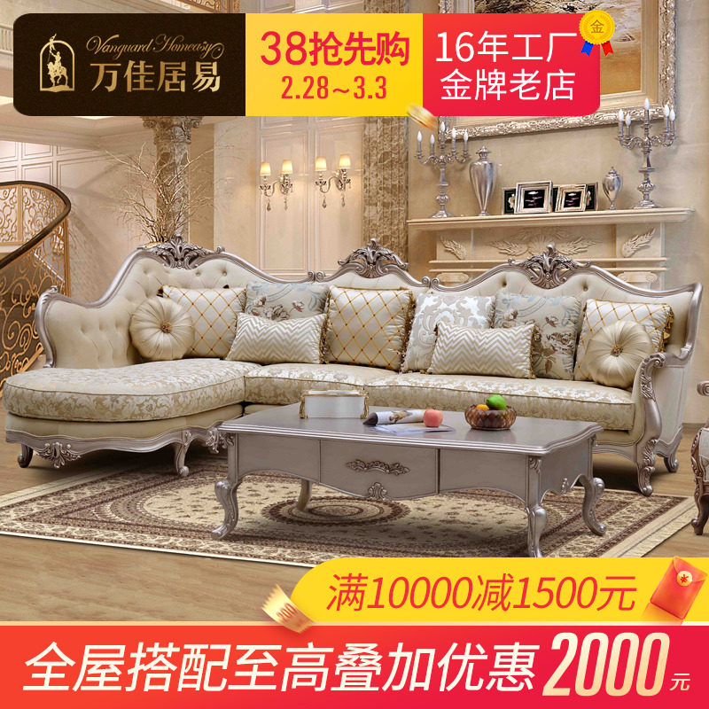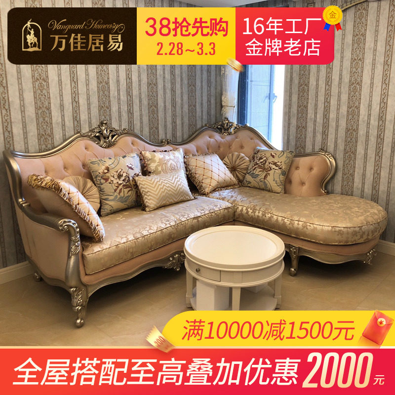 欧式沙发科技布可拆洗客厅大小户型组合转角贵妃整装实木雕花定制