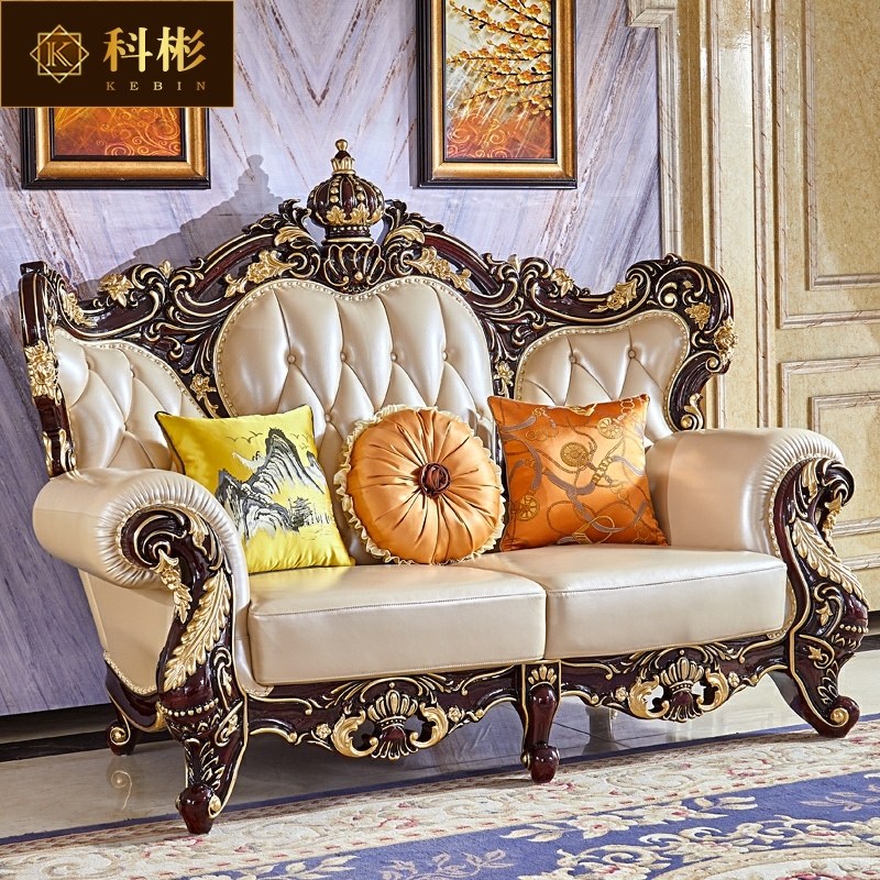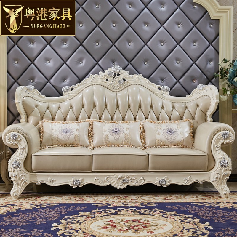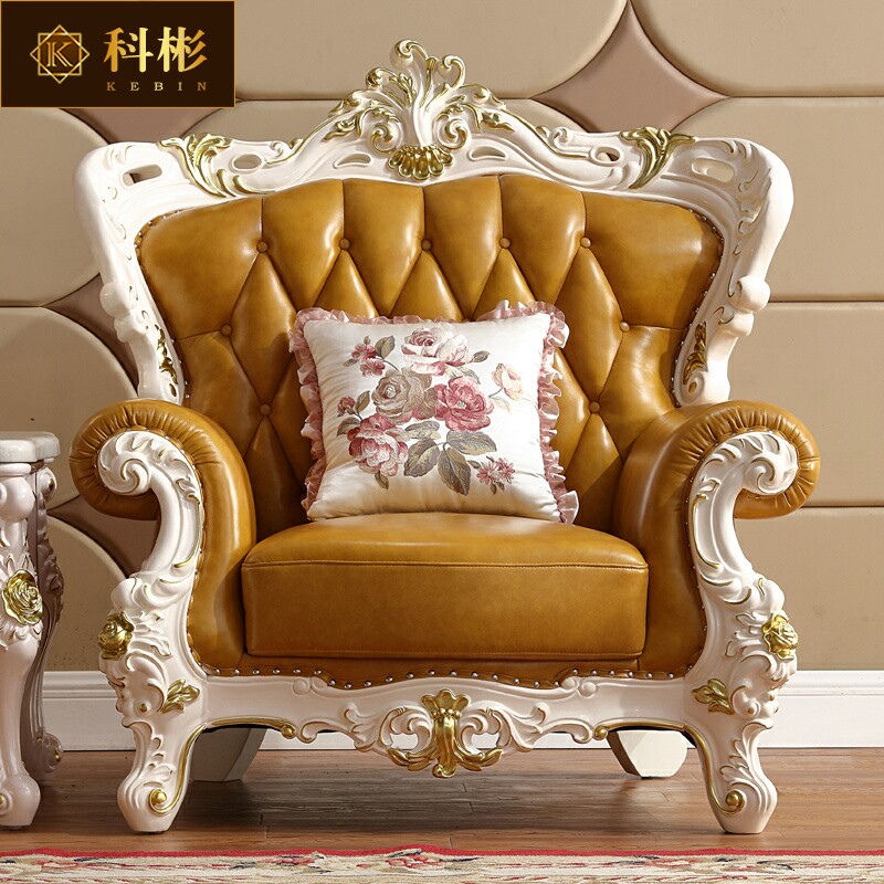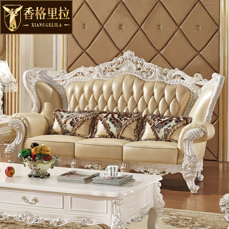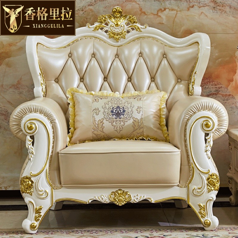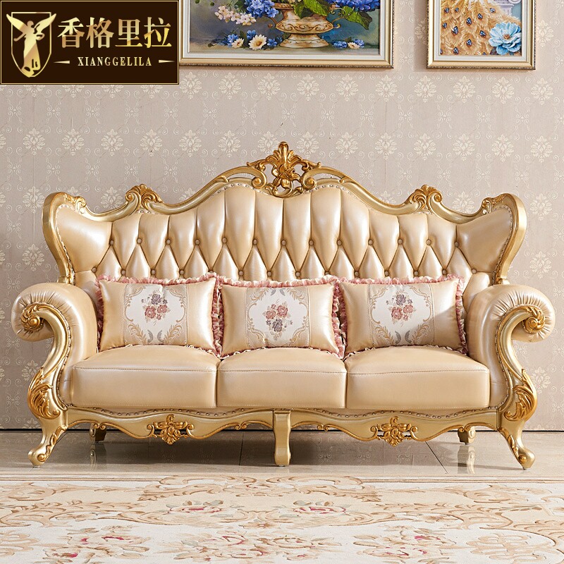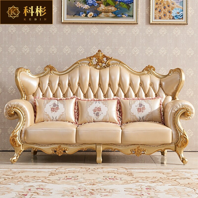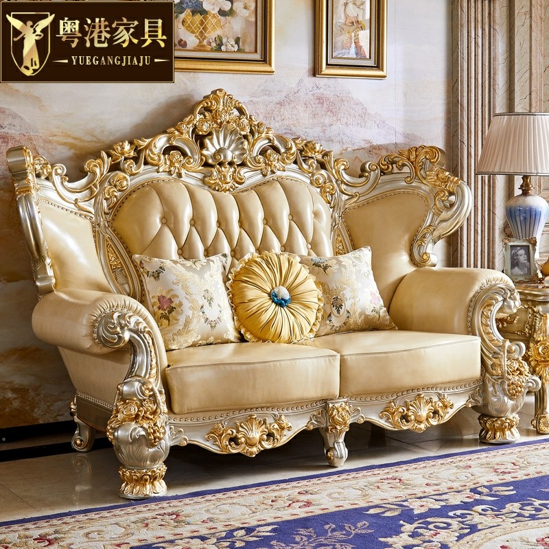 欧式真皮沙发 美式奢华别墅客厅香槟金实木大小户型沙发整装家具