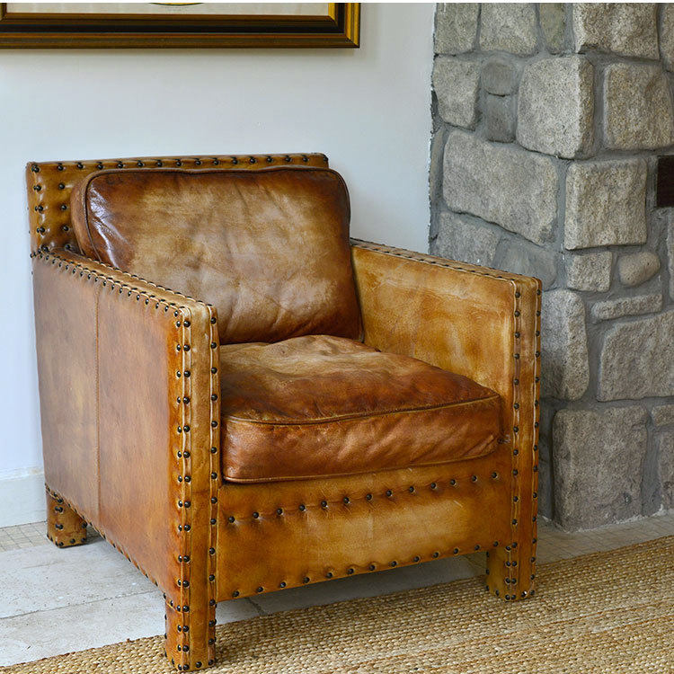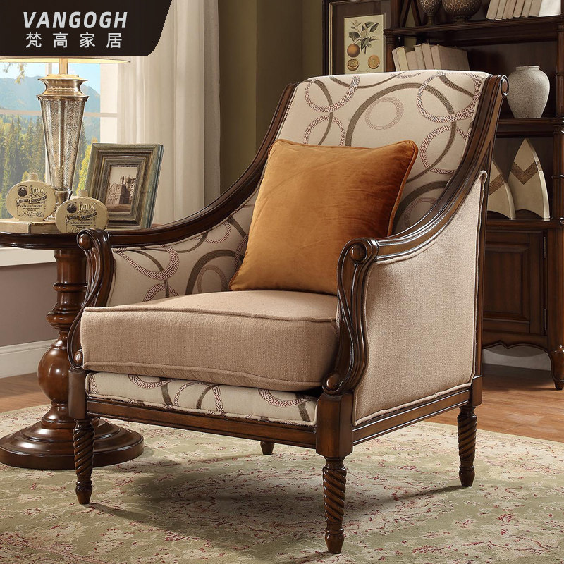 别墅美式乡村沙发头层牛皮客厅组合实木沙发真皮欧式复古单人沙发