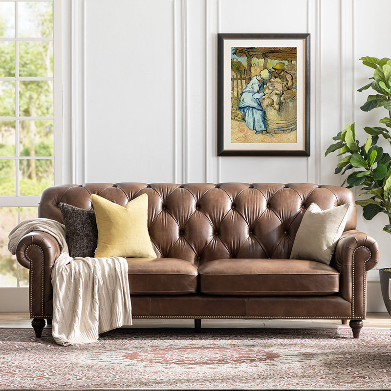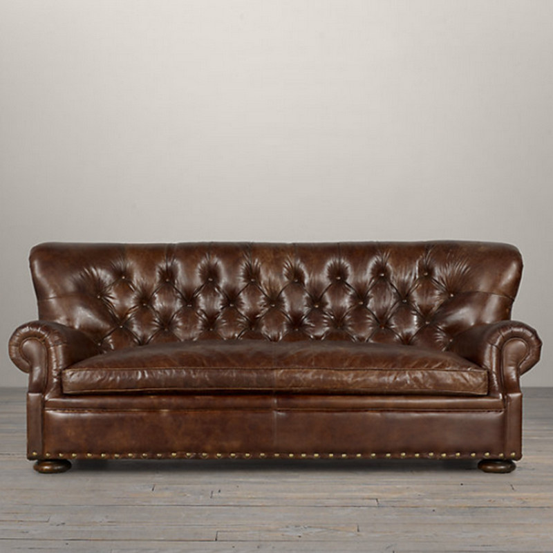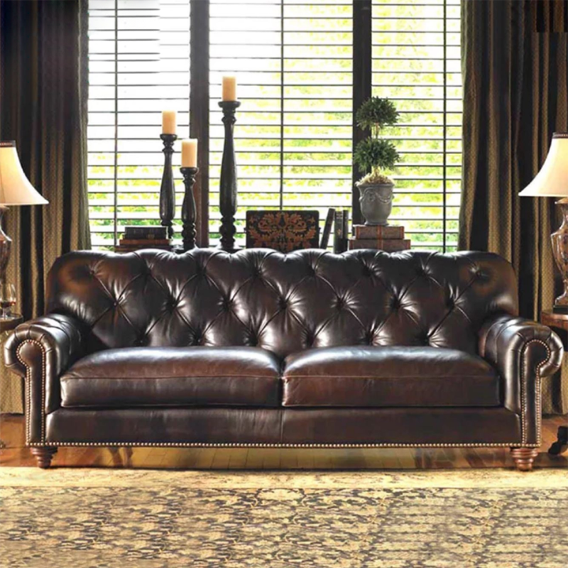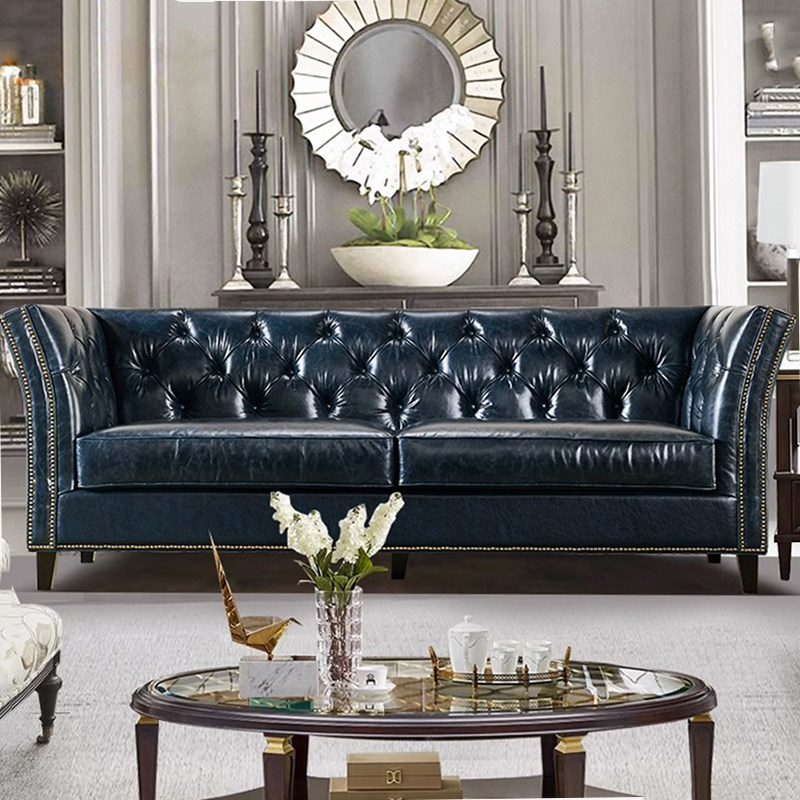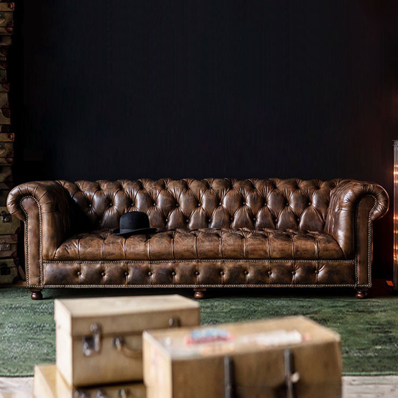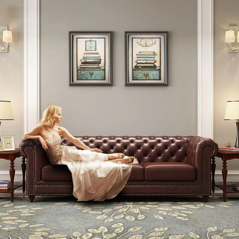 美式轻奢真皮沙发客厅头层牛皮复古拉扣油蜡皮会所雪茄吧欧式实木