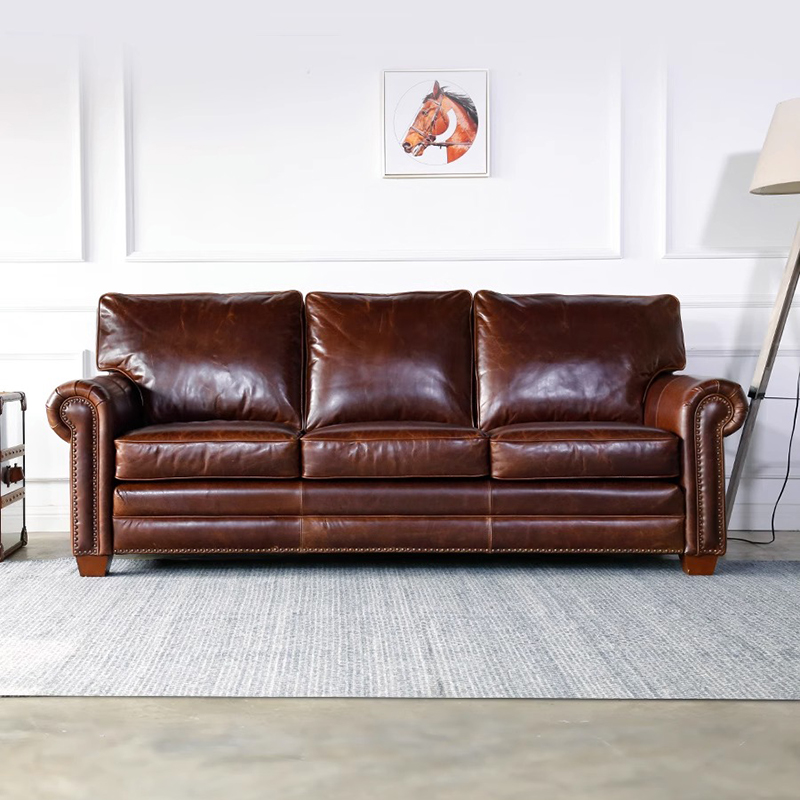 美式真皮沙发头层牛皮欧式复古油蜡皮简美客厅别墅直排三人位组合