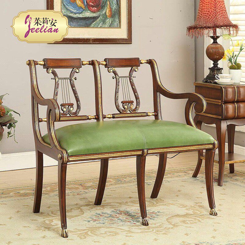 茱莉安法式欧式奢华宫廷实木桃花芯木绿色浪漫雕花真皮二位沙发