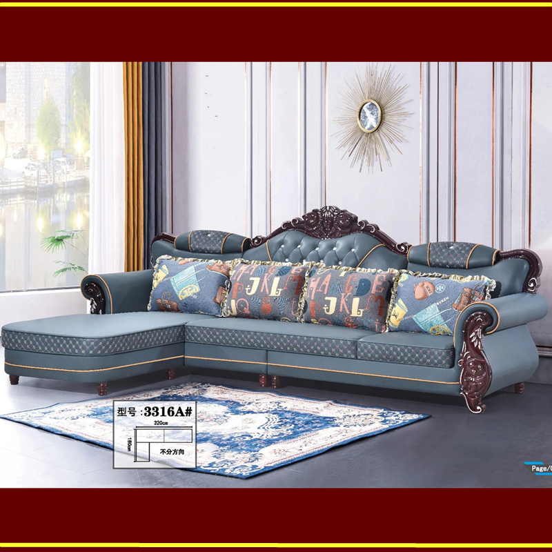 欧式沙发 美式奢华真皮雕花U型实木沙发性价比高123组合皮艺沙发