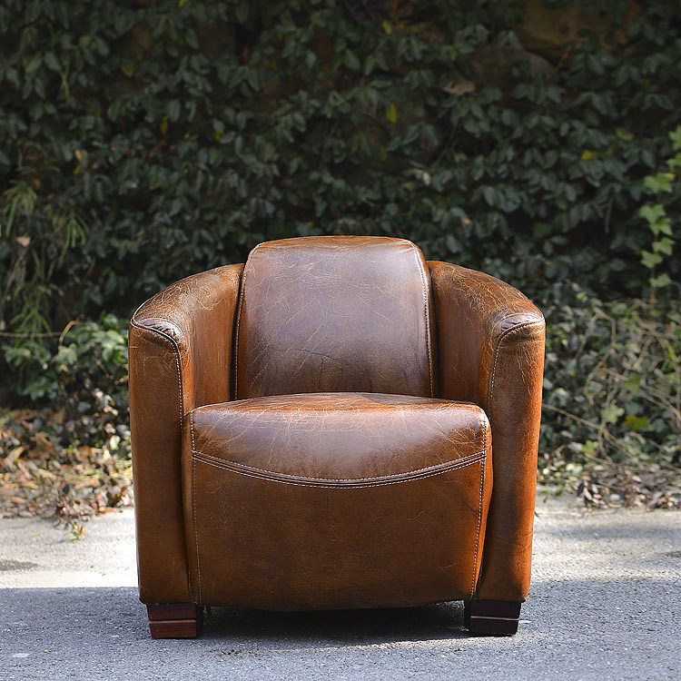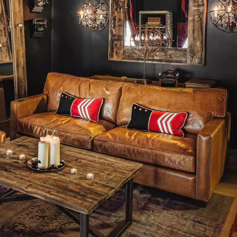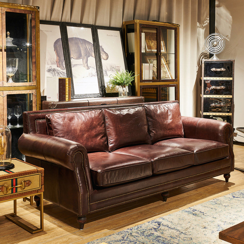 南洋风中古真皮沙发客厅美式复古油蜡皮直排实木欧式雪茄房咖啡厅