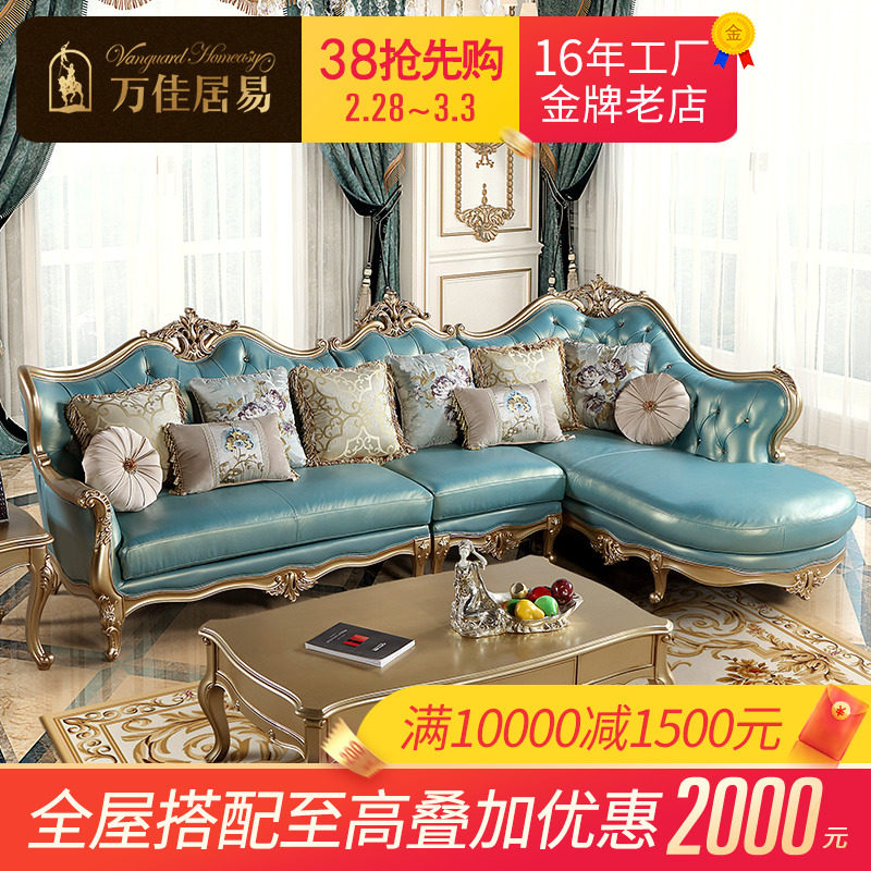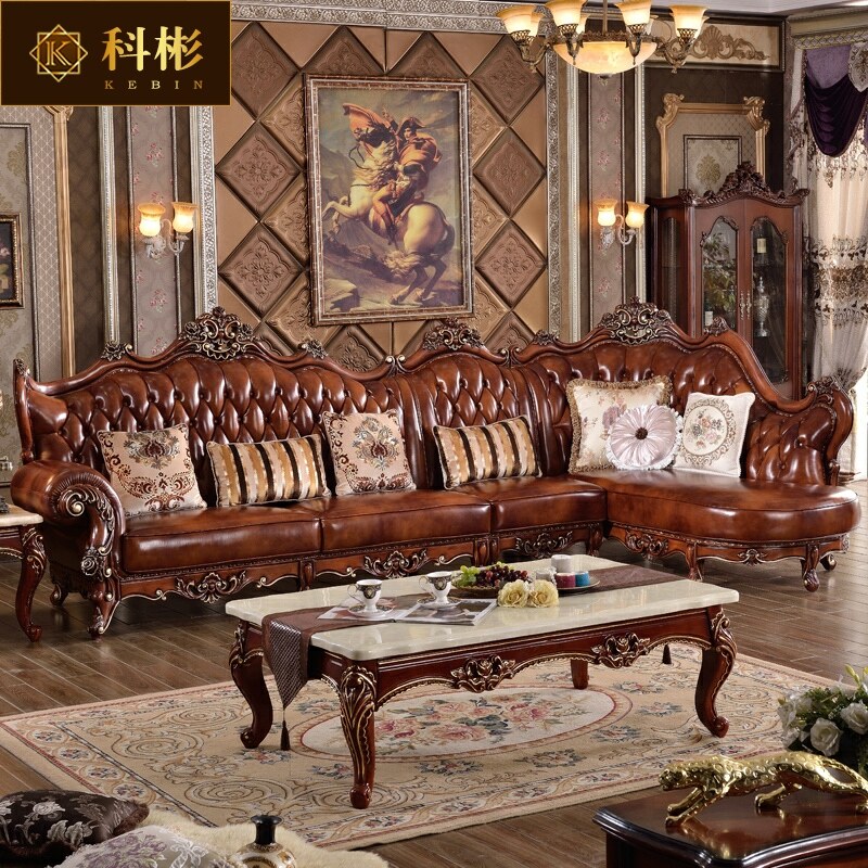 欧式真皮沙发 别墅客厅美式新古典实木雕花奢华U型1234贵妃沙发