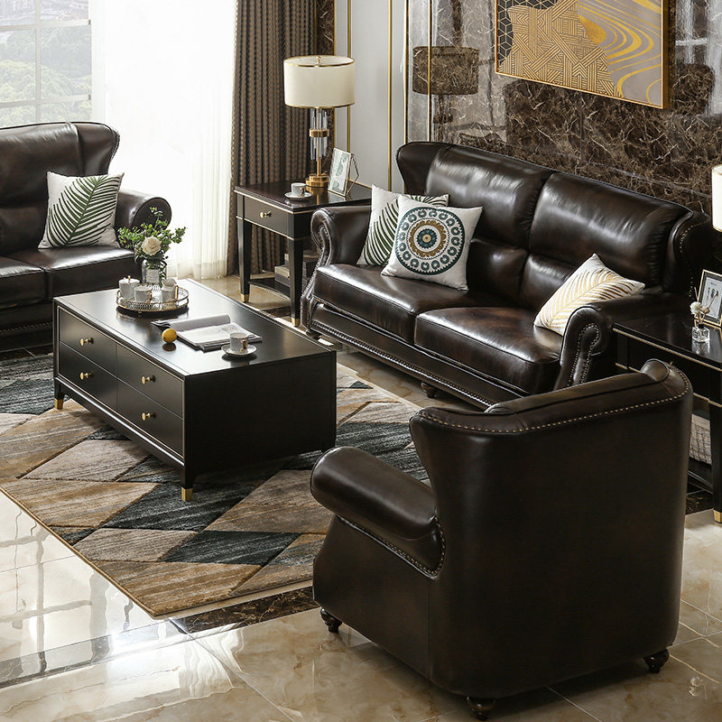 欧式真皮沙发转角头层牛皮组合大小户型客厅复古美式沙发别墅沙发