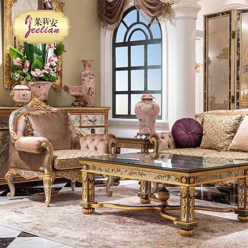 茱莉安欧式法式实木布艺奢华重工艺术沙发椅茶几电视柜组合套房