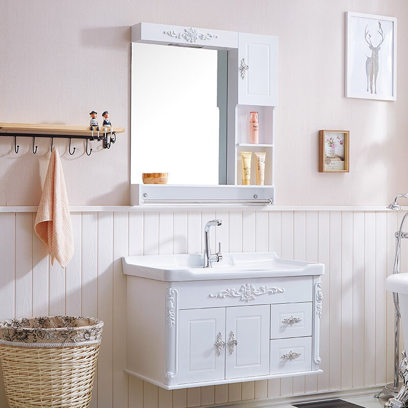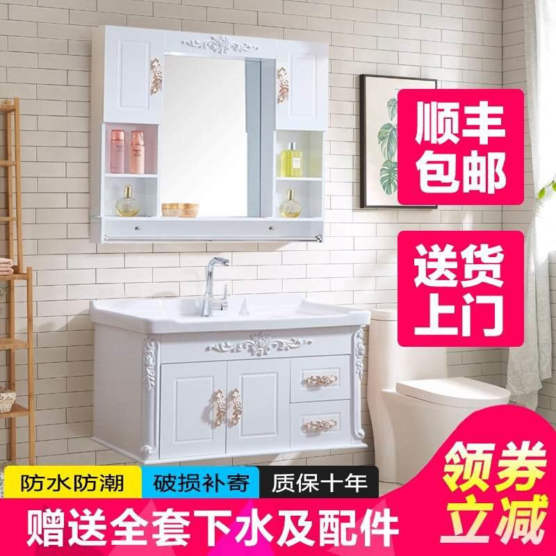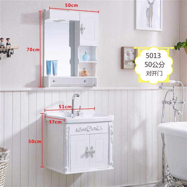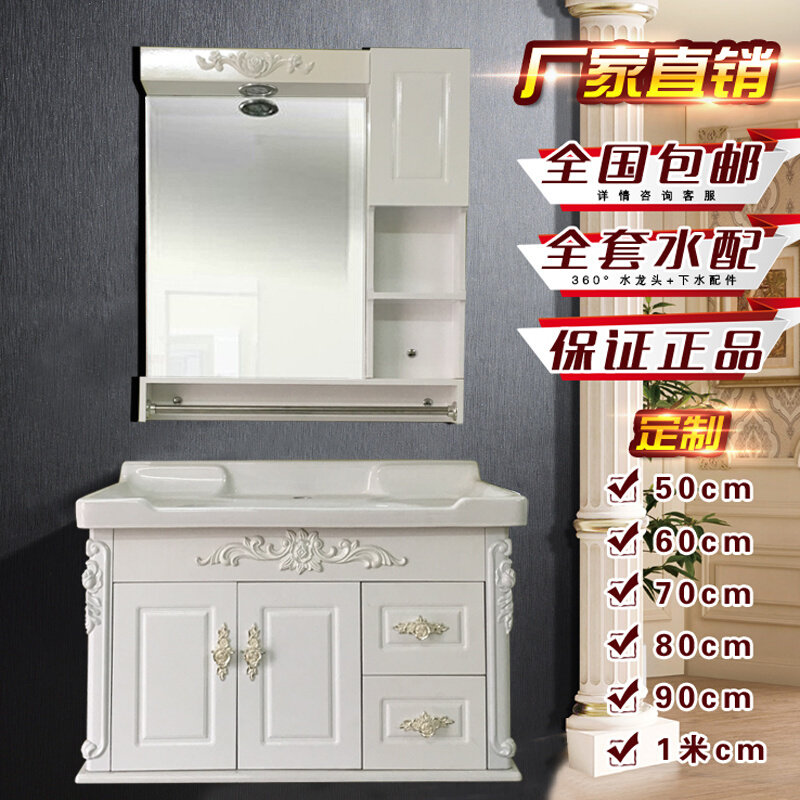 卫浴欧式pvc小户型浴室柜组合洗漱台洗脸池洗手盆台盆柜吊柜镜柜