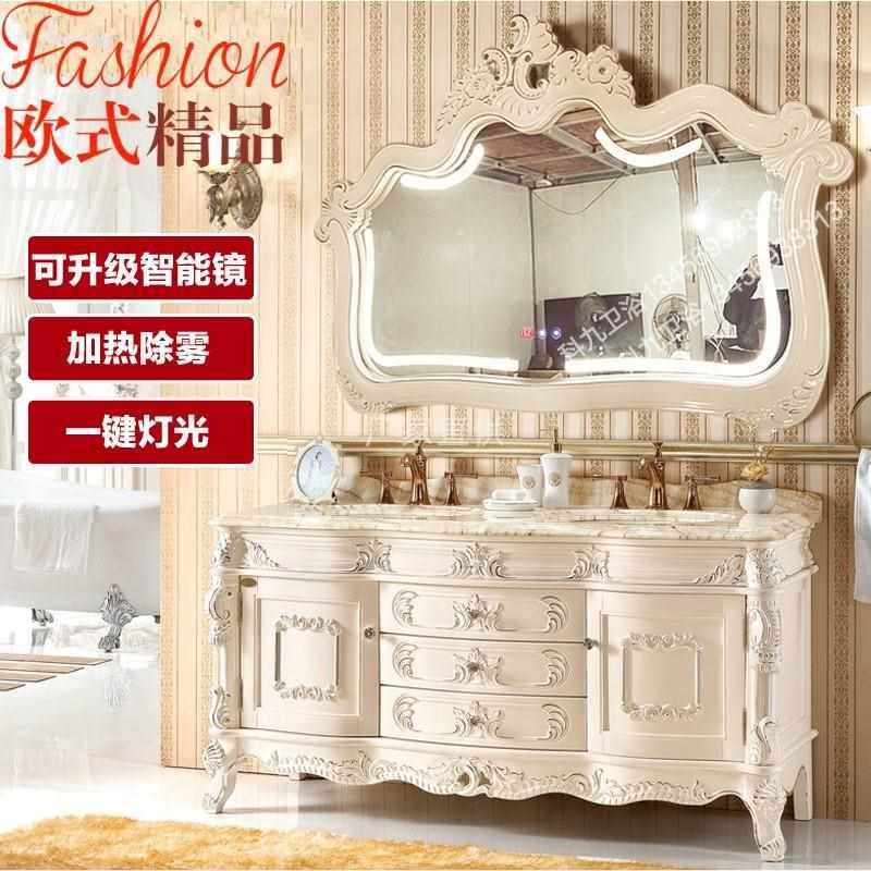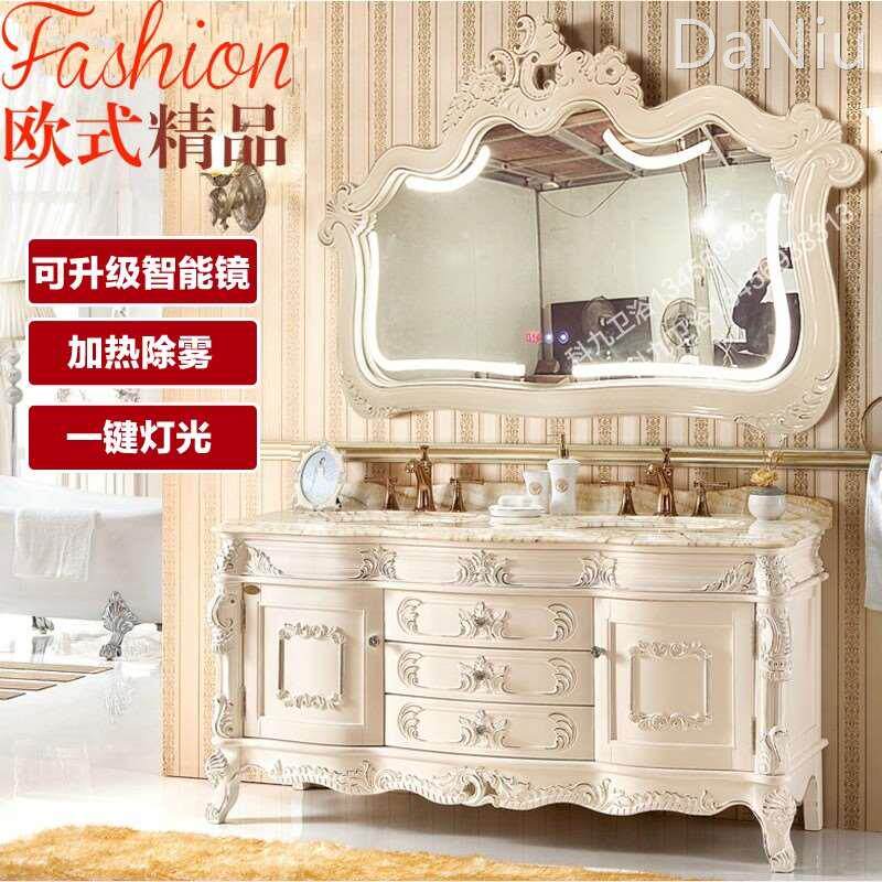 欧式橡木浴室柜组合实木洗脸盆柜双盆大理石洗漱台盆卫浴智能镜柜