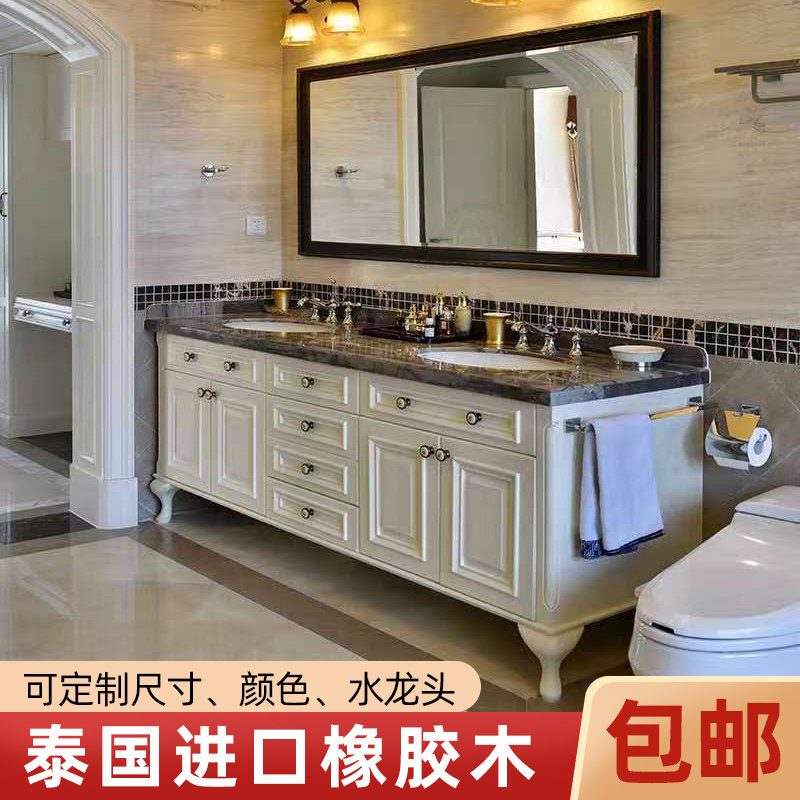 欧式浴室柜红橡木仿古洗脸盆柜组合大户型实木落地洗漱台双盆卫浴