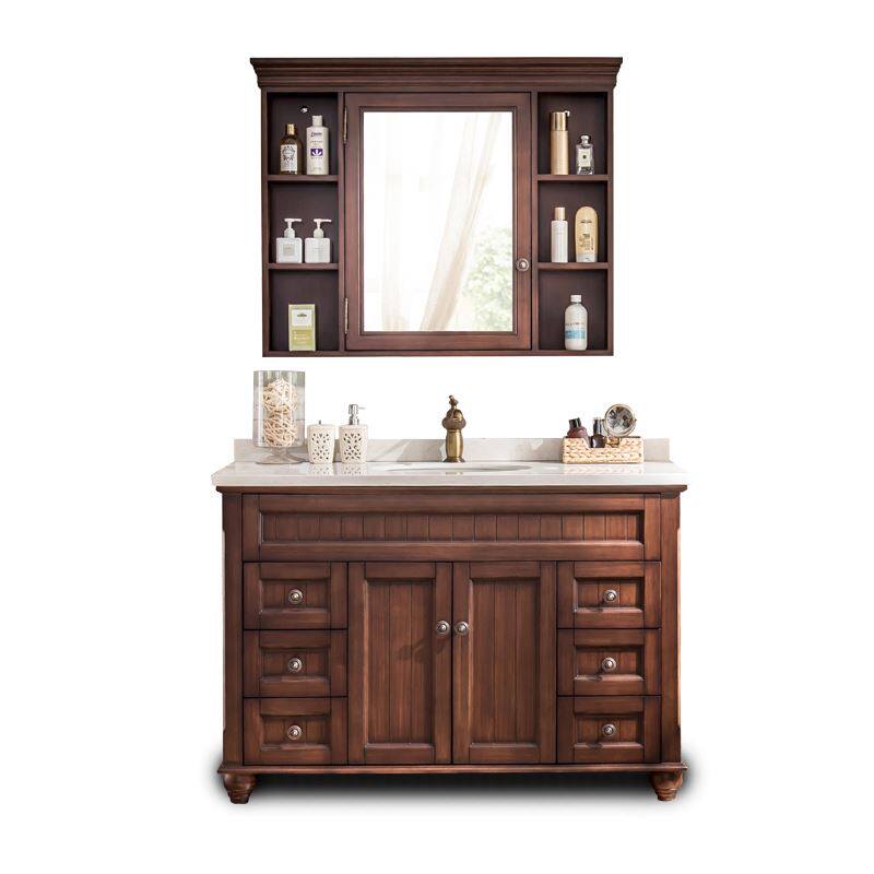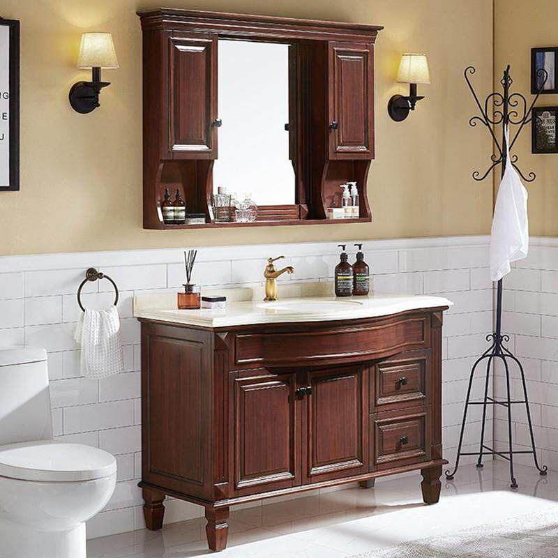 美式浴室柜落地式红橡木卫浴柜镜柜欧式卫生间洗漱台洗手盆柜组合