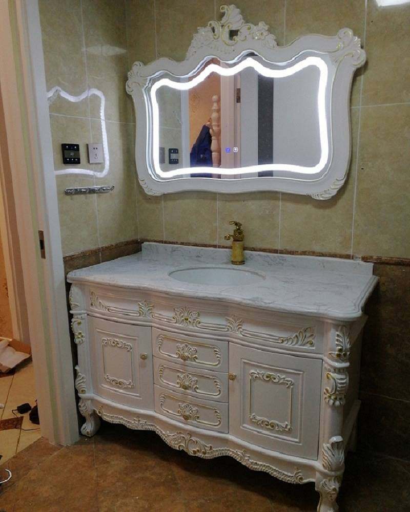 欧式浴室柜组合大理石洗漱台实木化妆室洗脸盆柜橡木浴柜智能镜