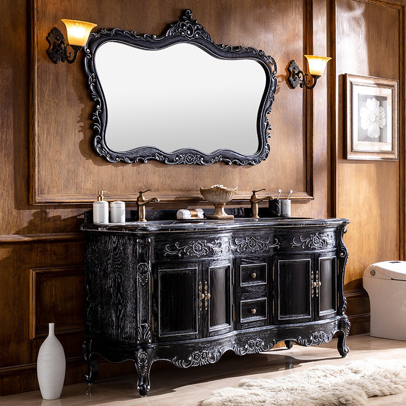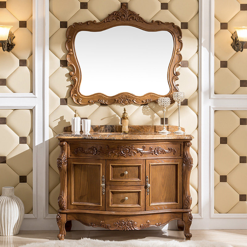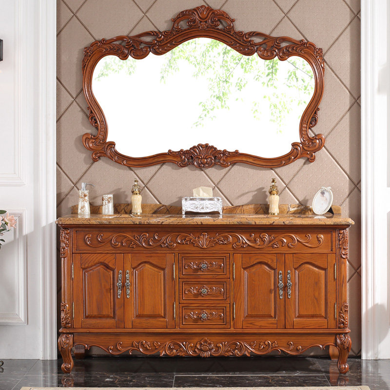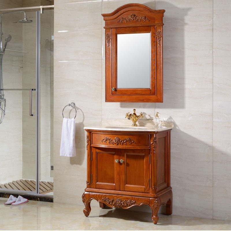 卫浴欧式橡木浴室柜组合落地式洗漱台面盆池卫生间洗手洗脸盆镜柜
